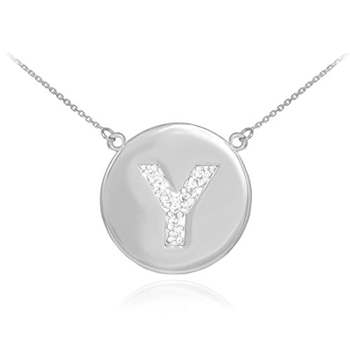 -. Title : 14k White Gold Letter "Y" Initial Diamond Disc Necklace