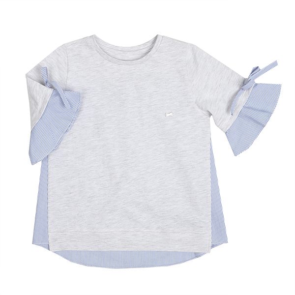소매부분을 리본장식으로 하여 러블리한 분위기이며 팬츠,스커트 모두 코디가 용이한 상품입니다.