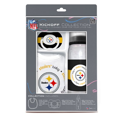 [Description] It`s never too early to be the cutest fan in the stands Includes bib_ pacifier_ and baby bottle with your favorite team`s logo 100% cotton bib for a soft_ safe_ easy to clean fabric Baby bottle and pacifier have been quality and safety tested to be 100% BPA and Phthalate free Official team logos for authenticity from day one This combination of a bib - bottle and pacifier covers all the essential needs of every little fan. Officially licensed and 100% BPA free. 3 Mo+ Baby bottle : 95% PP/5% silicon/Pacifier : 90%PP - 10% silicon/Bib : 100% cotton. N/A