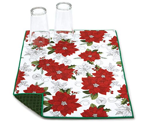 -. Title : Traditions Collection Poinsettia Christmas Reversible Dish Drying Mat