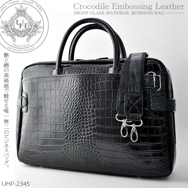 ユナイテッドオム プレジデント United HOMME President 牛革 クロコ型押し 2WAY ビジネスバッグ UHP-2345 ブラック  商品仕様:(約)W40×H38(もち手含む)×D10cm 牛革(クロコ型押し)×合皮 ショルダーストラップ