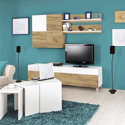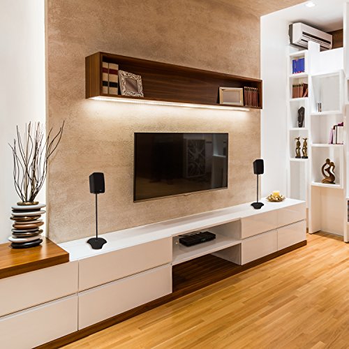 Studio : Atlantic, Inc. Publisher : Atlantic, Inc. Binding : Electronics Product Description The pair of 2H speaker stands is constructed of titanium-colored powder-coated aluminum and can each support speakers weighing up to 3.5 pounds with a sturdy base. Assembly options include 22-inch and 38-inch speaker mounting heights to provide the best listening experience. The wire management system hides speaker wires. installation is easy with the included hardware. 0