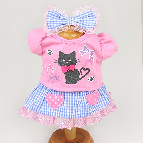 원본상품명: うさももドル 着せ替え人形 服 猫リボンTシャツ&スカト 水色チェック