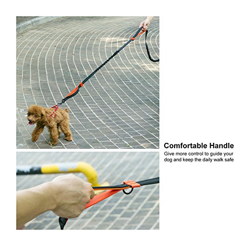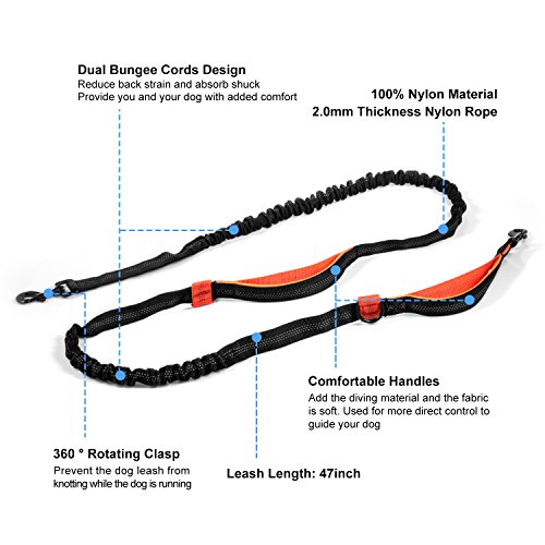 Waist Dispenser Including Coming with a FREE roll of plastic bags tucked in a black bone-shaped cone, so you can quickly clean up the mess your dog leaves on those untimely occasions. Dual Bungees Human Design It's a substantial leash with multiple clip points to adjust the effective length whenever necessary. You can walk two dogs at the same time with the two separate bungees in two different ways, wearing the waist belt or using the handle directly. Convenient Comfortable Two metal clasps of the dog leash ensure a convenient lock and open and the waist belt is easy to remove while releasing the buckle. The padded handles are very comfortable to use, preventing from the injuries. Suitable For All Size Dogs The dog leash is provided with strong bungee cords and metal clips. It is effortlessly while walking your dogs. Specifications: Color: Black and orange Dog leash dimensions: 75.2 x 0.9 x 0.07 inches Waist belt dimensions: 25.9-46.8 x 0.9 x 0.07 inches Weight: 14.3 ounces Package Contents: 1 x Rhodesy Hands Free Dog Leash with Dual Bungees for Walking, Running, and Biking 1 x Bone Waste Bag Dispenser 0 |
