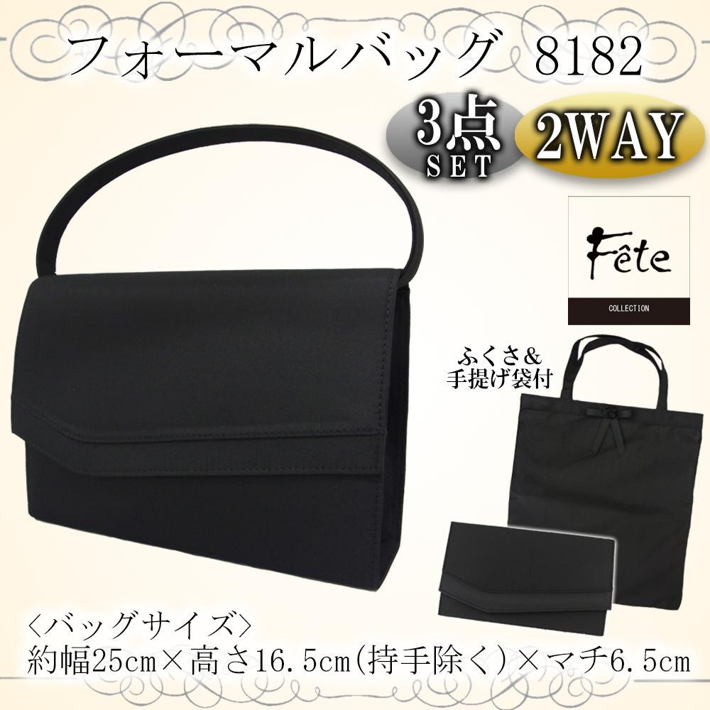 持手を取り外してクラッチバッグとしても使える2WAY仕様のフォーマルバッグに、ふくさ、手提げ袋が付いた3点セットです。ふくさと手提げ袋もバッグと同じマイクログログラン・グログラン生地を使用し、シンプルに仕上げています。 |