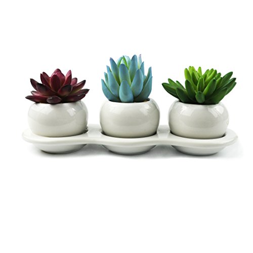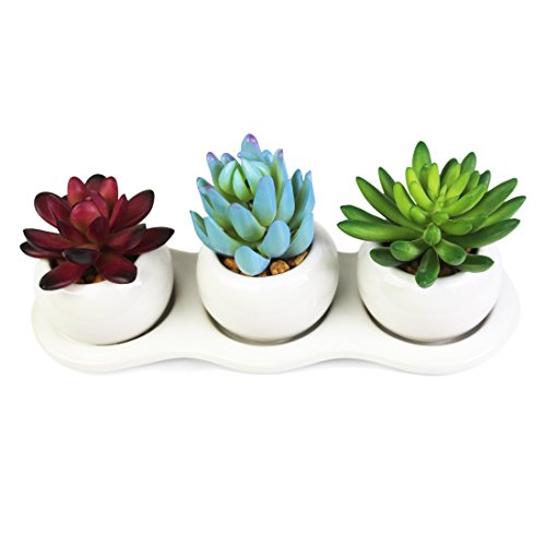 Home Decor--3 Different Artificial Succulent Plants with a Linked White Ceramic Planter Pot for Home Decoration Office Decoration