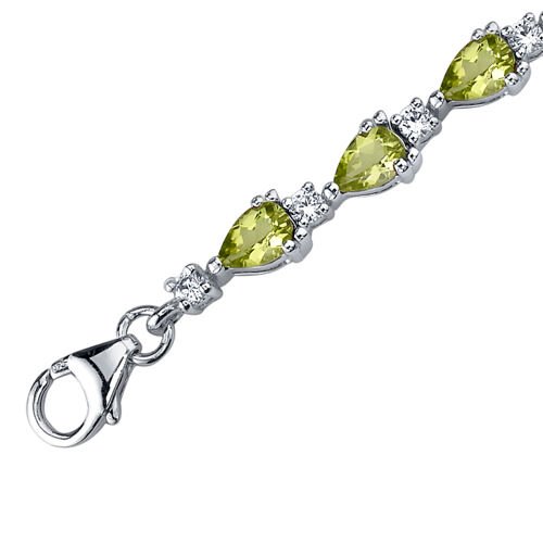 -. Title : Peridot Bracelet Sterling Silver Rhodium Nickel Finish 6.75 Carats Pear Shape