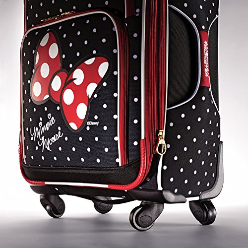 American tourister branded zipper pulls. Large packing compartment with large mesh pocket on interior panel and cross straps with fun printed lining.