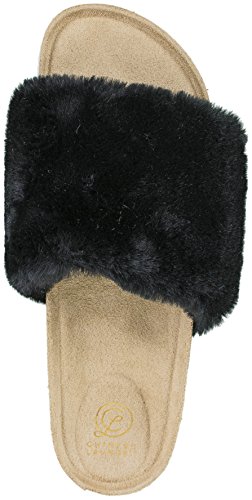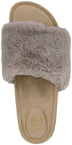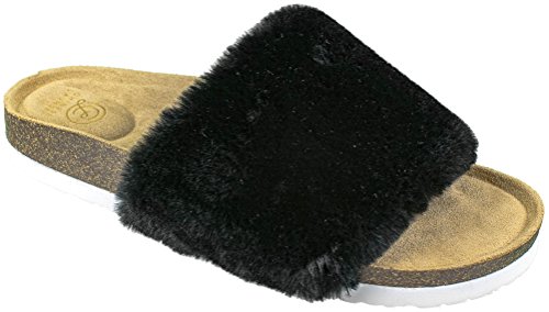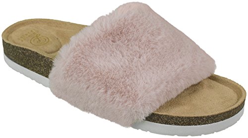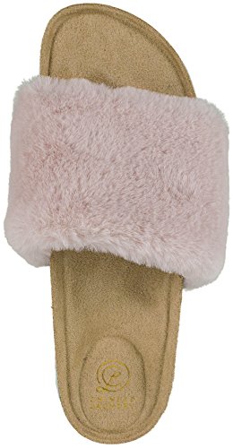 Binding : Apparel Product Description These fashion flip flop slides with a soft, faux-fur wide band from Chinese Laundry are perfect for around the house or out on the town. With a full molded, comfort footbed conformed to the contours of your feet, these provide way more support than the average slide in the market -- and with a beautiful, full plush add that fashion hit that makes shoes fun. They come in five sizes, 6-10, and fit comfortably to a medium width foot. 0