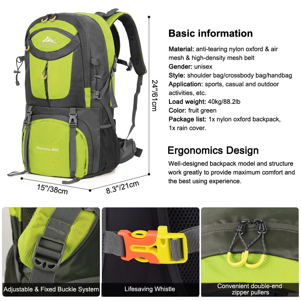This superior waterproof hiking backpack featuring large capacity is suitable for sports, casual, outdoor and so on.