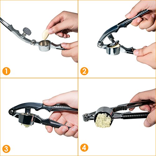 Effortless - Some garlic press is hard to use and only man can control them well. But our garlic press is different from those ones, ergonomic design makes the garlic press work easier for both male and female.