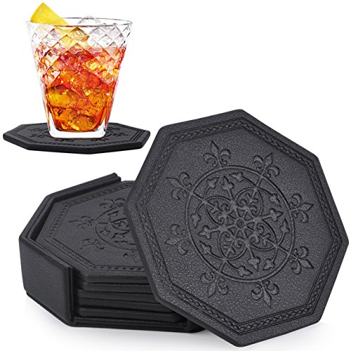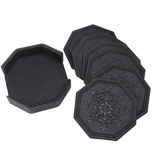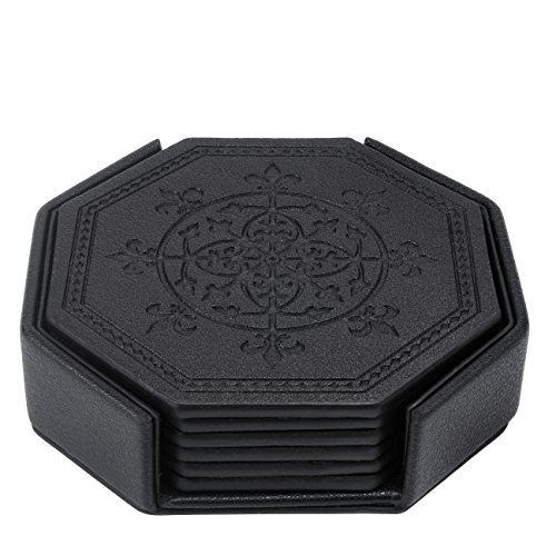 Coasters,Set of 6 in Holder,Handmade Vegan Leather Unique Octagon Coasters for Drinks Glasses Wine Tea by CloudLyMo