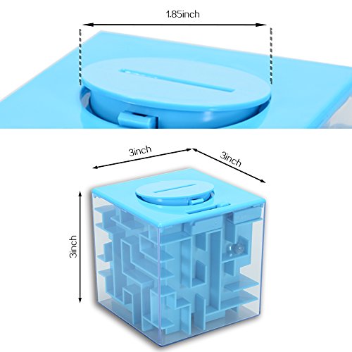 Benefits of Solving Puzzle: Improve your concentrations Improve the hand-eye combination Improve the spatial thinking increase IQ level Improve overall cognitive skills Improve space imaginative ability, balance ability, memory patience. A Different Present Giving Way: Put your gift in this puzzle box and make the receiver one to get your gifts until he/she solves the puzzle Suitable Age: Recommended for age about 6 years or up. These game toy maze boxes maybe too challengeable for kids under 6 to solve. Specifications: Size: 3. x 3. x 3. "/ 9 x 9 x 9 cm. Weight: 3.88 oz Material: acrylic. For Ages: 6 years up. Color: Blue, Green, Pink (optional) Package list: 1 * Money Maze Bank Saving Collectibles Case Coin Gift Box 0 |
