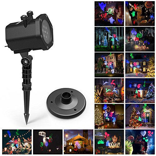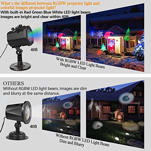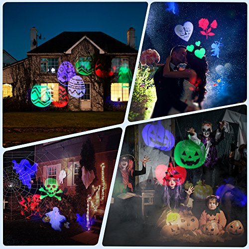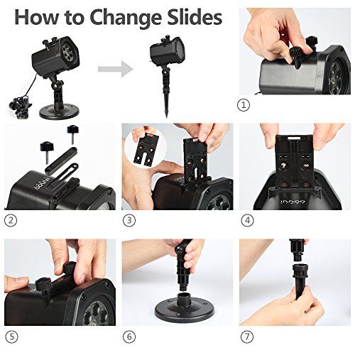 - Simple Installation: Comes with a flat base and a stake to be used indoor or outdoor. Just unscrew little nuts and switch out the light designs to change to whatever holiday or occasion you like. You can see the images by looking on the slide, find the best image you want to project and just simply set it up within 5 minutes. Fastest way to create different lighting effects to decorate.