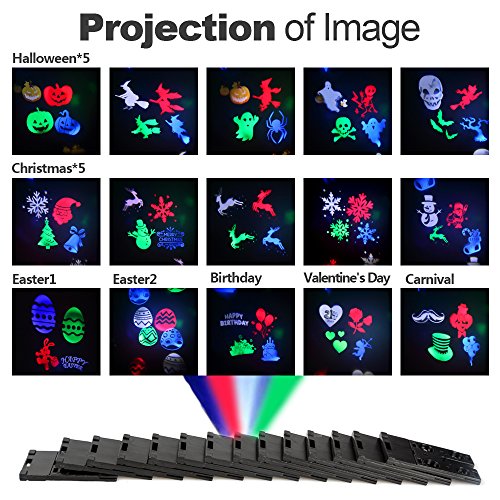 - Great for various Occasions, Holidays and Parties: Comes with 15 different slides (5*Halloween, 5*Christmas, 1*Birthday Party, 1*Carnival, 1*Valentine’s Day, 2*Easter). Just purchase one project light and use it for a whole year.
