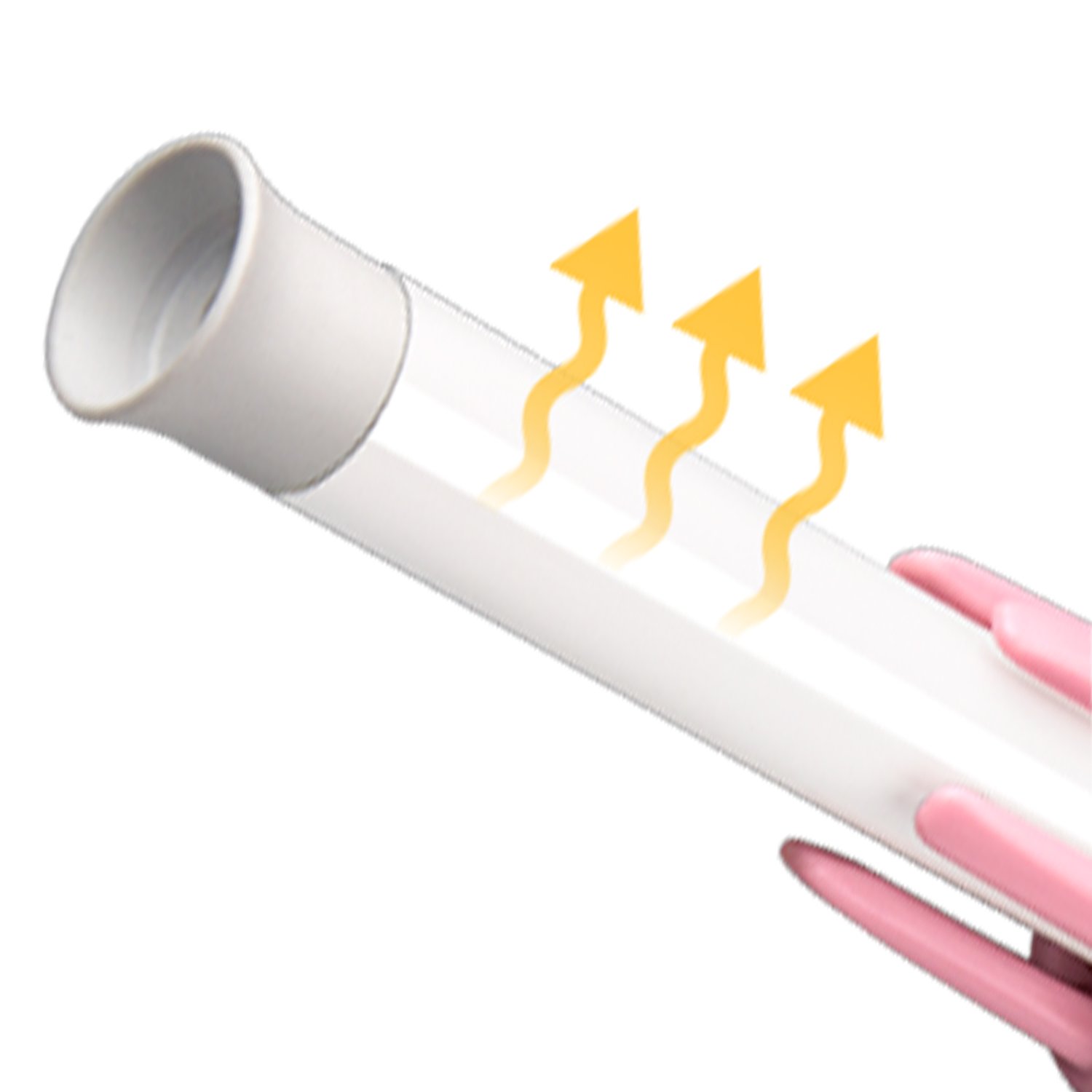Take a bundle of hair with a width of about 2.3 cm, clip it in an annular clip, and then winding it automatically when you press and hold the rotation button in the direction you want to wind.