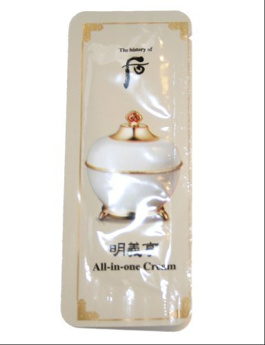 -. Binding : Misc. -. Brand : The History of Whoo -. Feature : Resilience cream that applies 3 main secret method of Chinese medicine of royal court which cured skin disease of King and empress. / Ingredients that reinterpret ingredients which cared imbalance of skin into modern method activate skin. / Improves circulation of skin, lifts resilience, and creates healthy skin. / Ships from CA. Fast shipping with free samples. Weekly stock up Newest Fresh 100% original and genuine products from Korea. Worldwide shipment available! 100% genuine product. -. Label : LG Household & Health Care Ltd. -. Manufacturer : LG Household & Health Care Ltd. -. ProductGroup : Beauty -. ProductTypeName : BEAUTY -. Publisher : LG Household & Health Care Ltd. -. Studio : LG Household & Health Care Ltd. -. Title : 30 X the History of Whoo Samples Myeong-Ui-Hyang All-in-One Cream 1ml Super Saver Than Normal