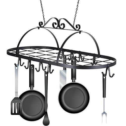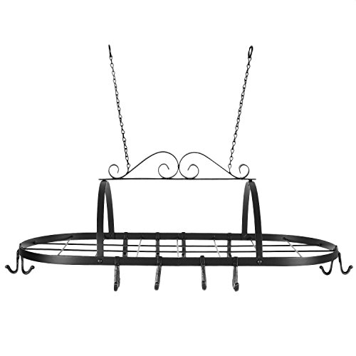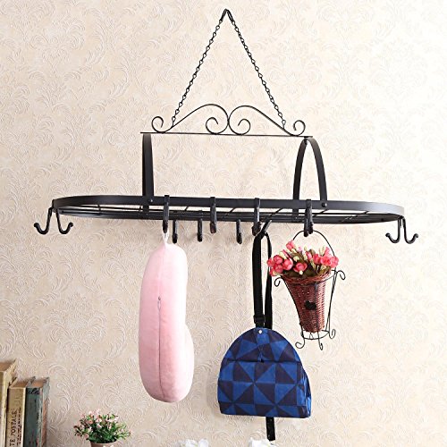 ★ Specification: ★ 100% Brand New Iron Pot Rack Material: Iron Color: Black Dimension: 80 x 40 x 26cm/31.2 x 15.6 x 10.1inch Structure: 10 hooks Application: pot, pan, spatula and other cookware Package Content: 1 x Hanging Pot Holder ★Feature: 1.Hanging design, space saving 2.Sturdy structure, durable 3.Wrought iron hanging pot holder with 10 hooks 4.Ideal to hang your extra cookware like skillets, pans, or other such utensils ★ Customer Voice: Client 1: Perfect storage solution for my small kitchen. Good, sturdy and very attractive rack. Very easy to install. It keeps everything nice, tidy and clean. Wonderful addition to my kitchen Client 2: It is a solid pot rack and looks great over my island. Very sturdy and plenty of opportunity to add more hooks if you need more :-) Our company are constantly trying to upgrade our products and improve our services to suit our customers' requirements. Any questions please let us know. Your satisfaction is our main priority 0 |
