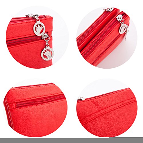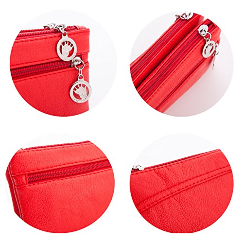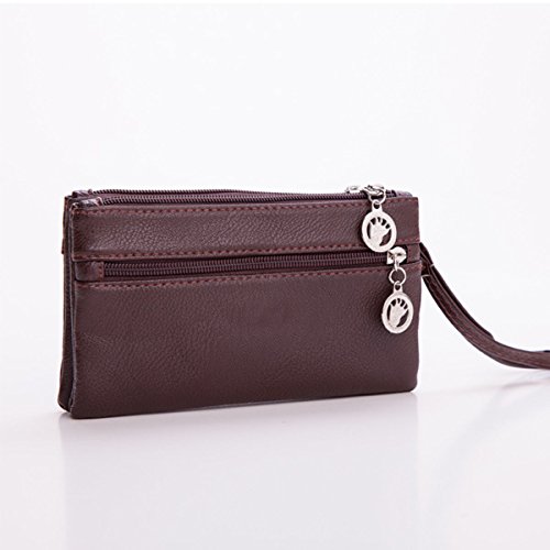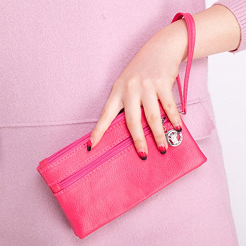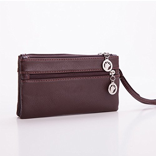 -. Feature : Structures: 2 zipper main compartment,External with 1 zipper pocket, can hold cell phone,credit cards,small cosmetics,coins and so on; One wrist strap included. / Great Organization: Keeps your credit cards, cash, coins, check book and your cell phone separated and secure, More convenient and more easy to organizer your stuffs. / Materials:This clutch wristlet wallet purse is made from good quality PU leather , Lightweight, durable. / Size and Weight: Measures 7.48" x 4.33" x 0.78" (19cm x 11cm x 2cm), weight: 83g . / It's suitable for ladies and girls,and it's a good choice for daily use,shopping,hiking and so on.