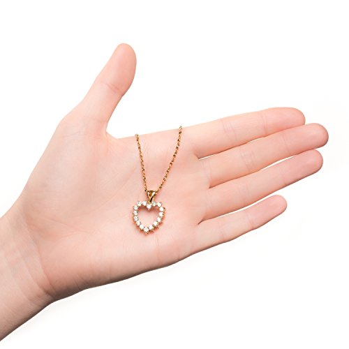 - Feature : ►CZ Open Heart Pedant + 18" Chain. 100% UNCONDITIONAL FREE LIFETIME REPLACEMENT GUARANTEE ON ALL LIFETIME JEWELRY(TM)! In business since 1978! / ►Real 24 Karat gold, laid over a heart of semi-precious metals, Tarnish Resistant. 20mls of 24 karat gold per necklace - 10 times more gold than in the cheaper electroplate that changes color quickly. BEWARE OF CHEAP IMITATIONS! LIFETIME WARRANTY GUARANTEED ONLY WHEN SOLD BY LIFETIME PRODUCTS GROUP! / ►Trade secret special SEMI-PRECIOUS alloy of the best bonding metals ensures the LOOK OF SOLID GOLD and LONG LIFE of each fashion jewelry crystal heart pendant / ►Crazy low Amazon introductory prices for a limited time only! Excellent Customer Service! Ideal for girls, women, teens. Makes a great GIFT (comes in a small Gold cotton filled gift box) / ►We only use 24k GOLD (THE PUREST form of gold) instead of 10k or 14k! No cheap metals like steel, copper (turns green) or nickel (toxic) as a base