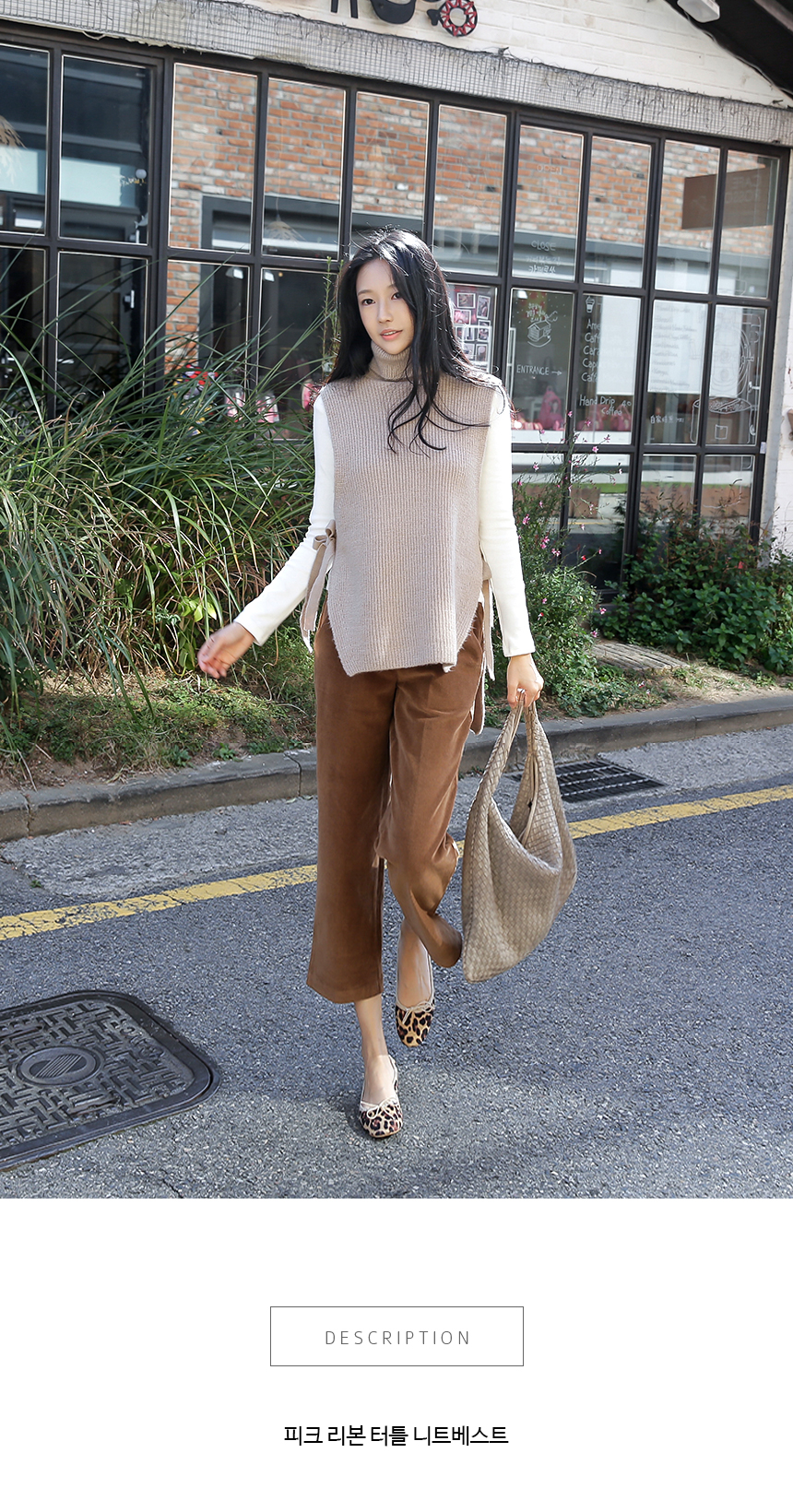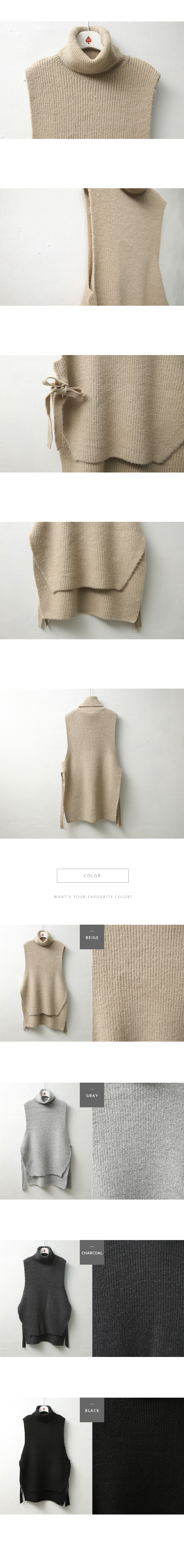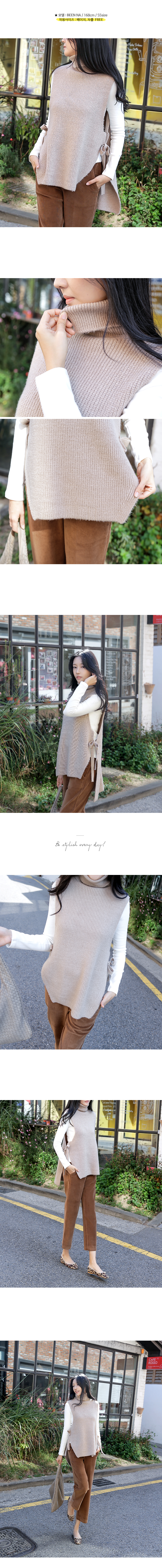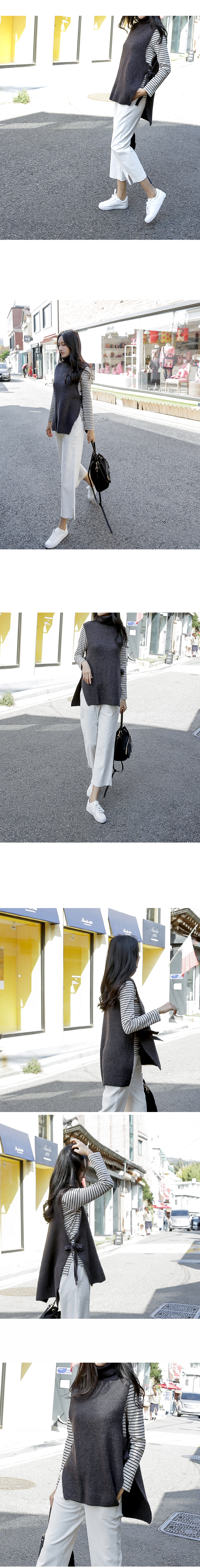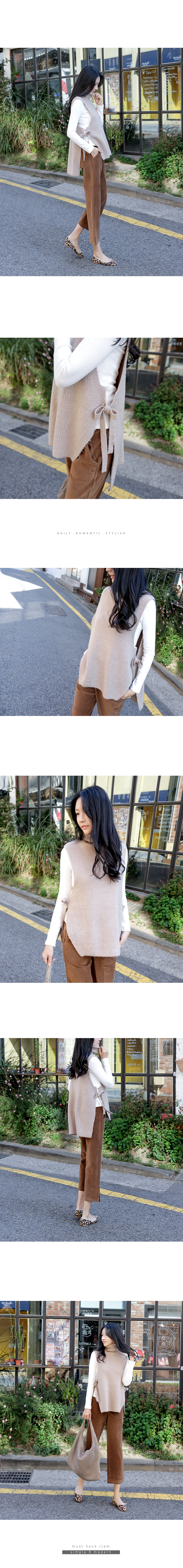 리본 디테일의 앞, 뒤 언발 터들 니트 베스트