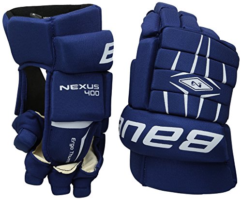 -. Binding : Sports -. Brand : Bauer -. Feature : Wider, comfortable and extremely protective, the Nexus gloves are designed from a classic structure, providing a relaxed feel in the fingers, backhand and cuff region / The two piece segmented fingers and ergo thumb allow great mobility; Built with double density foams for protection and a stretch nylon shell for durability / A grey nash palm with hydrophobic mesh liner provides the player with a comfortable feeling glove -. Label : Bauer Performance Sports -. Manufacturer : Bauer Performance Sports -. Model : 1041144 NEXUS 400 GLOVE - SR ROY15.0-P -. PackageQuantity : 1 -. ProductGroup : Sports -. ProductTypeName : SPORTING_GOODS -. Publisher : Bauer Performance Sports -. Studio : Bauer Performance Sports -. Title : Bauer Senior Nexus 400 Glove
