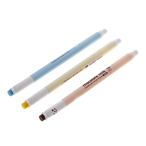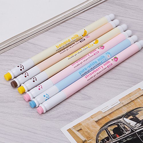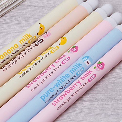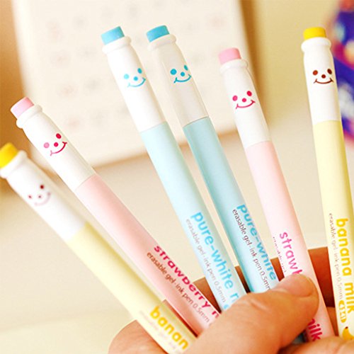 -. Title : Lukalook 3Pcs 0.5mm Milk Bottle Erasable Gel Pen Smiling Face Blue Ink Maker Stationery