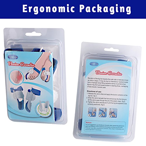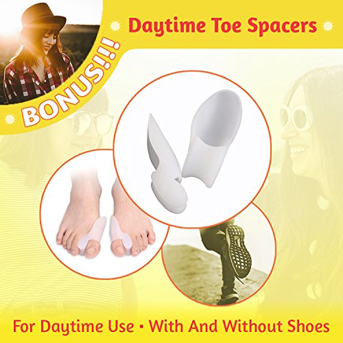 Package includes: 1 Pair Bunion Corrector Splint (Left Right) - for Nighttime Use 1 Pair Silicone Gel Toe Spacers - for Daytime Use with Shoes 1 Case for Toe Spacers