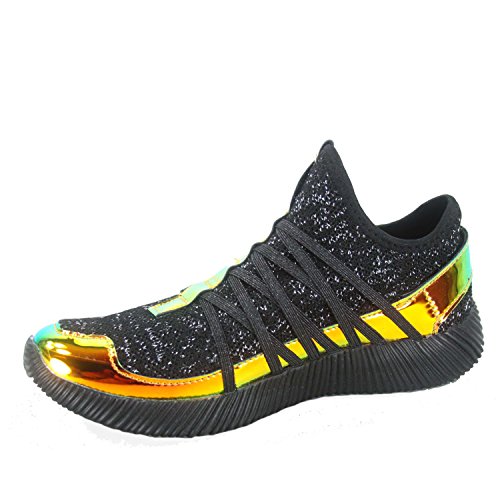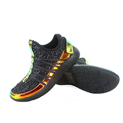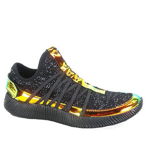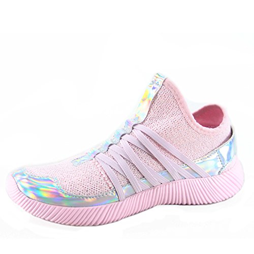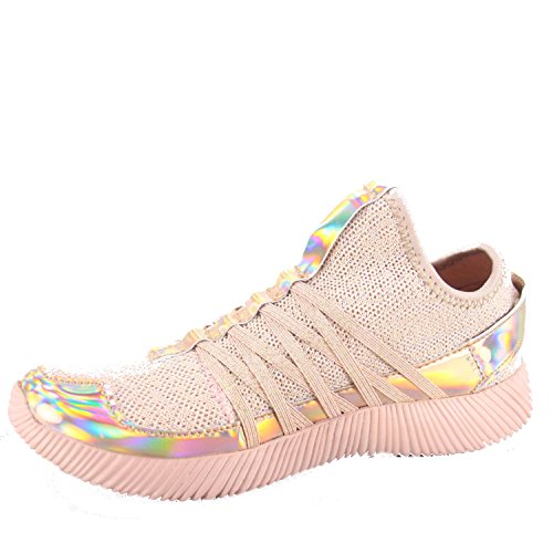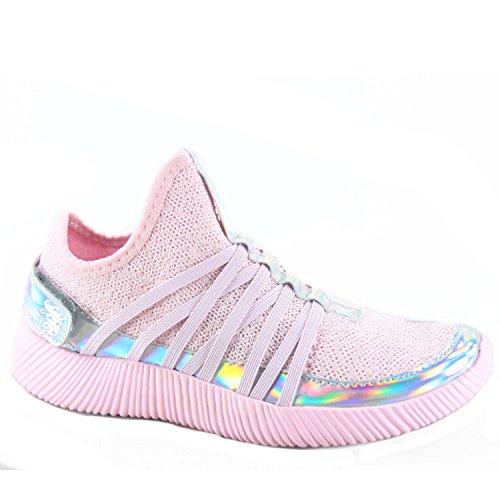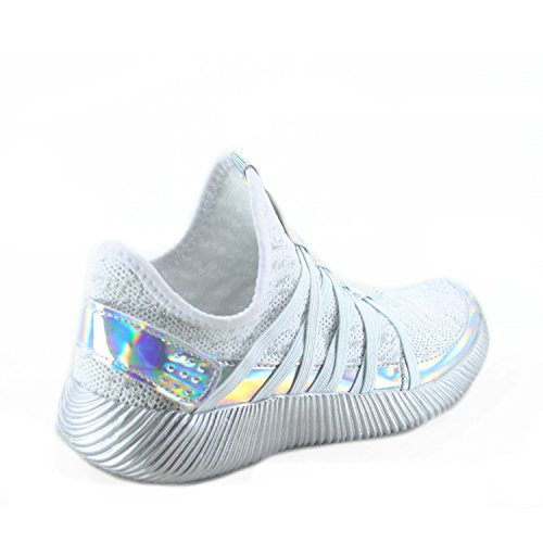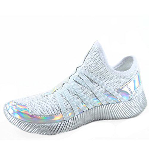 Product DescriptionRound toe silhouette Marled knit with holographic patent trimming, and rigged outsole Finished with an elasticized straps design at vamp Lightly cushioned insole0
