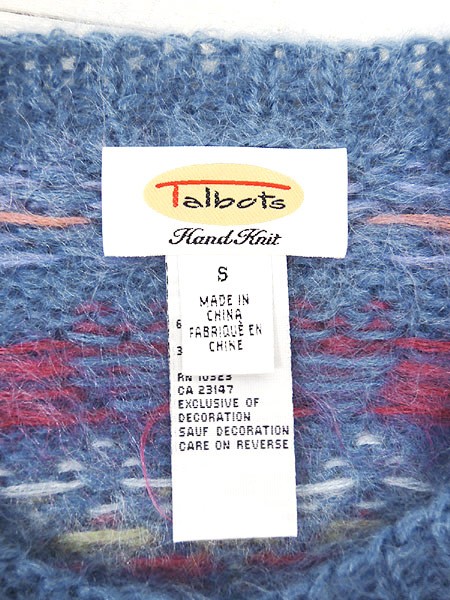 Ladies ブランドTalbots タルボット カラー青 メール便不可 コンディション★★★ モデル- 素材モヘア68%・アクリル32% 表記サイズS 実寸サイズ 着丈 63 cm 身幅 51 cm 肩幅 43 cm 袖丈 58 cm ※ウエスト・ヒップ以外は平置き採寸