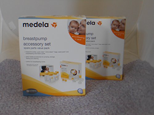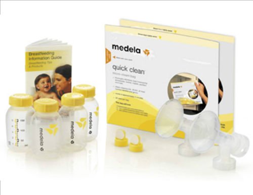 Each pack includes: 4 breastmilk bottles - 5 oz bottles perfect for collecting and storing breastmilk with colorful, easy to read volume marks. 2 valves & membranes - Compatible with most Medela breastpumps. (Not for use with Freestlye) 2 breastshields - 24 mm one piece breastshields are compatible with most Medela breastpumps including Pump In Style. 2 Quick Clean "Mirco-Steam bags - For daily cleaning of breastpump and breastmilk feeding accessories (20 uses per bag). Breastfeeding Information Guide - A helpful guide to breastfeeding containing tips and hints. This listing is for 2 packsFeature