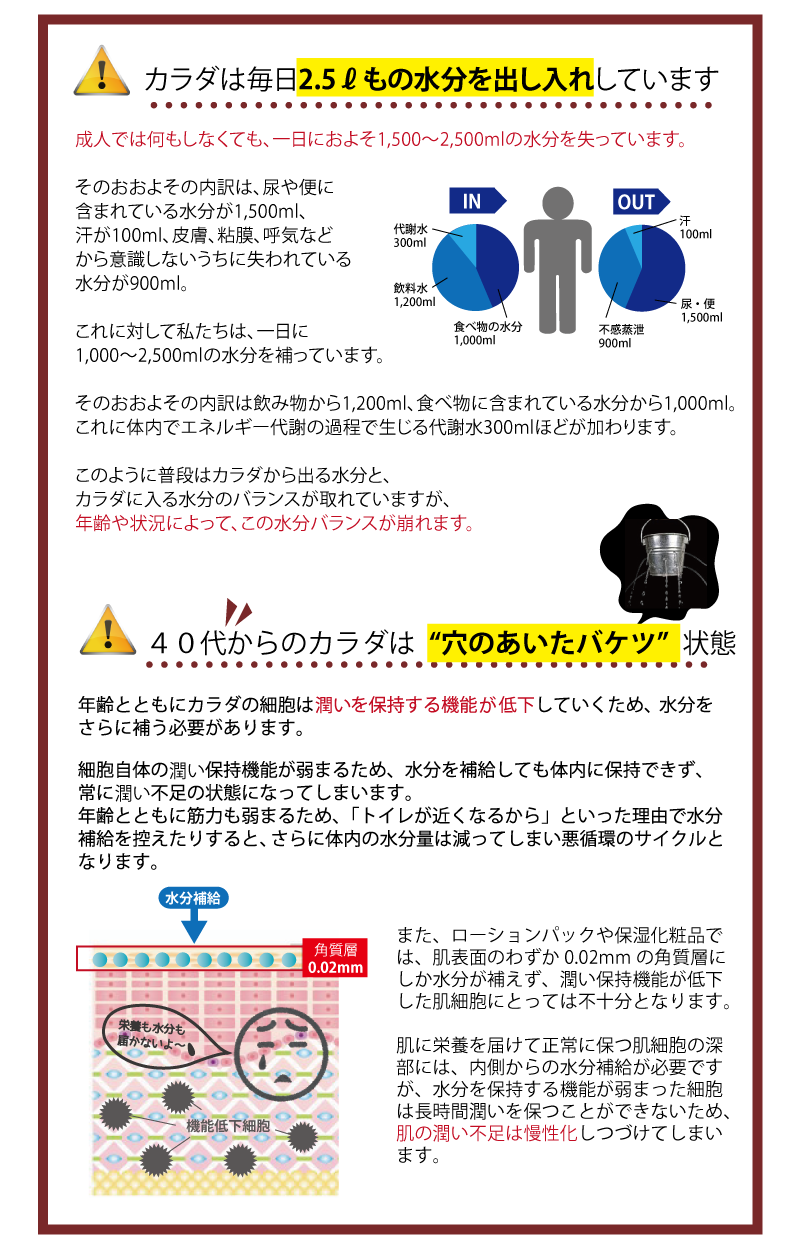 体内の保水維持機能を高めることが美の近道です。健康的な細胞を育てるインナーケアで解決!