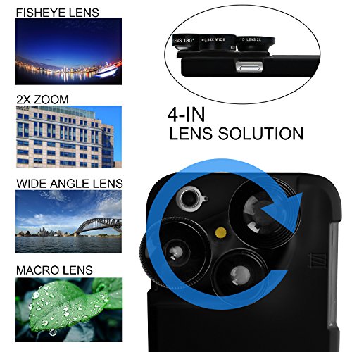 -. Feature : Combo design. iPhone 6/6s case plus camera lens kit protect your iPhone and bring you fun of shooting. / Four lenses in one case. The fisheye, macro, wide angle and telephoto lenses satisfy your shooting requirement. / Easy operation. Easy to put case on your iPhone or take it off, and the lenses can be rotated, no needs to take off. / High-quality material. Hard PC case and aluminum lens shell give maximum protection Package: iPhone 6/6s case with lenses *1, lenses caps*3. Warranty: Non-artificial damages, 1-month replacement, 6-month warranty