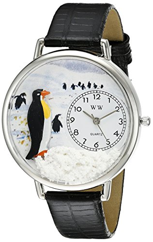 《우마사쿠루웃치》 펭귄 흑레더 실버 프레임 시계 #U0140006