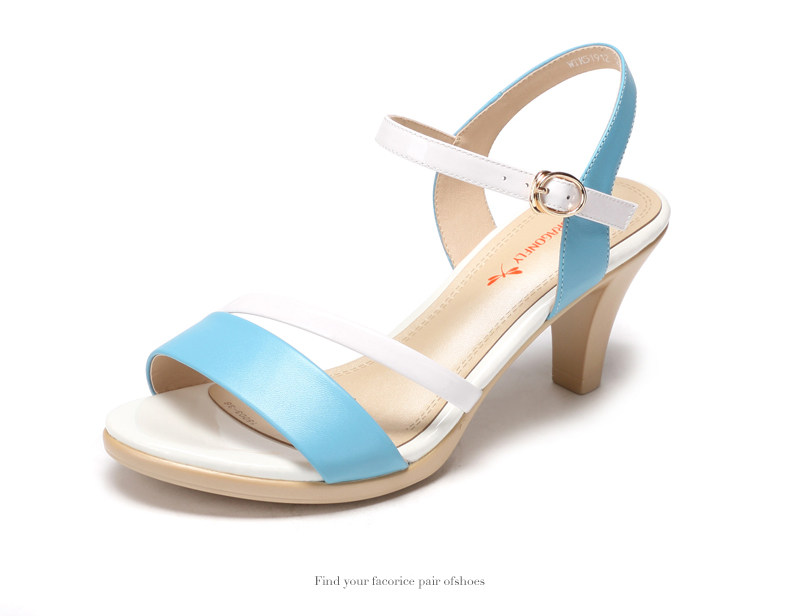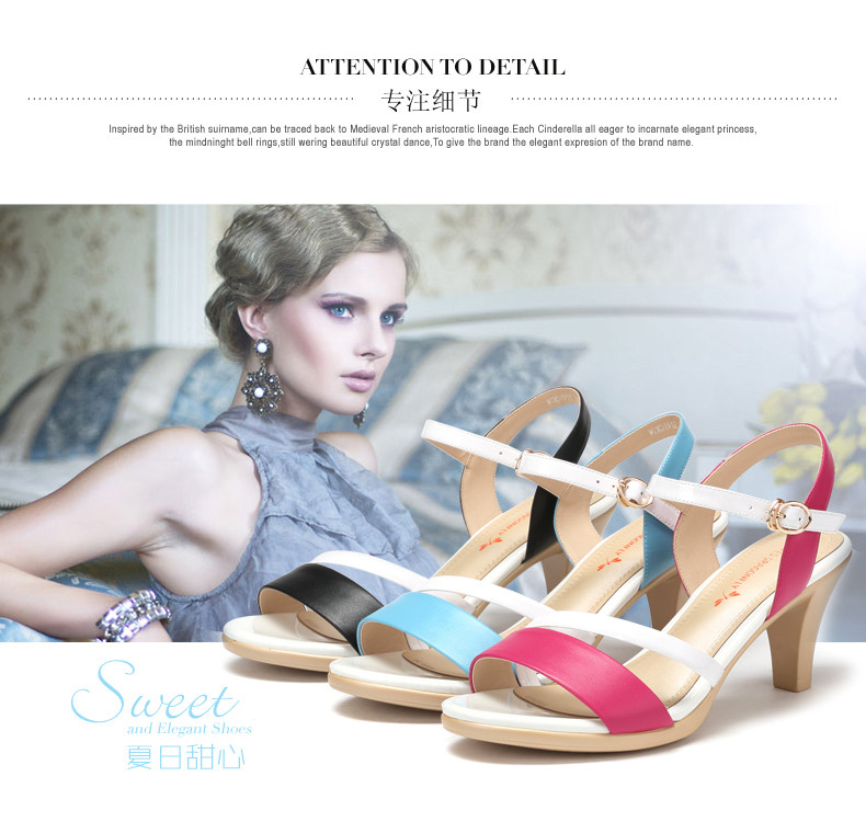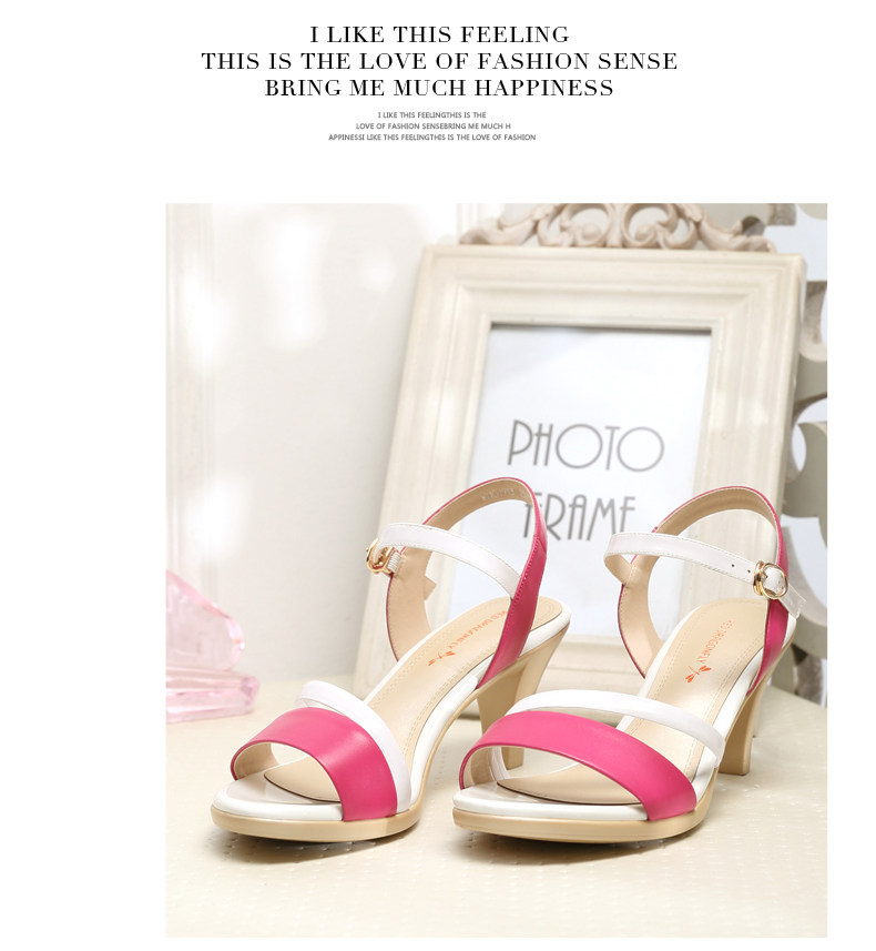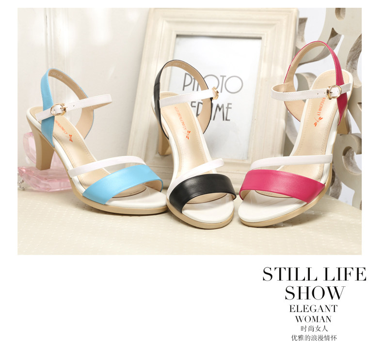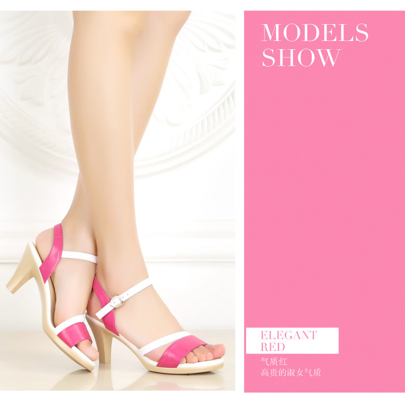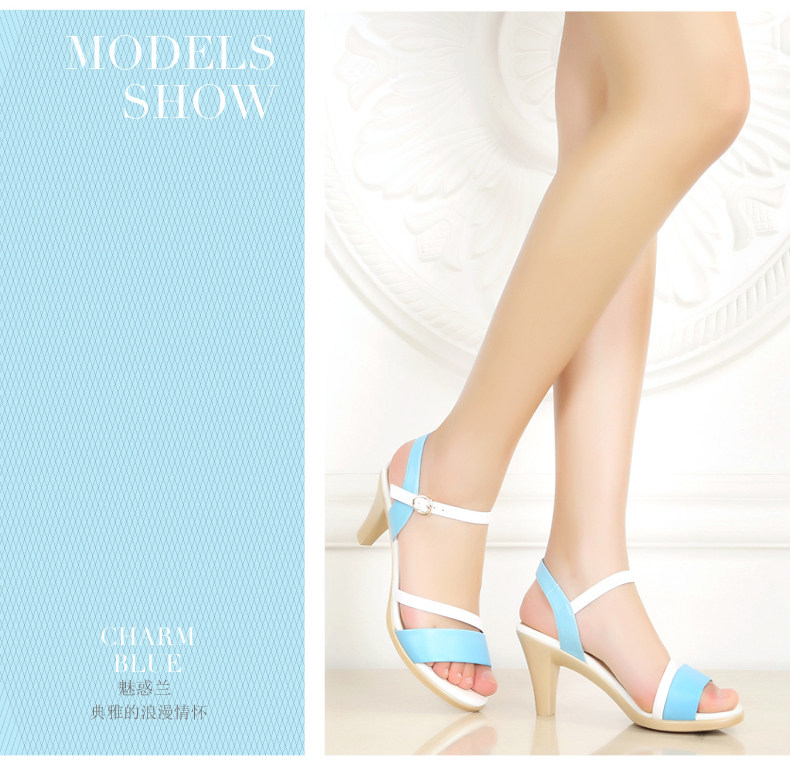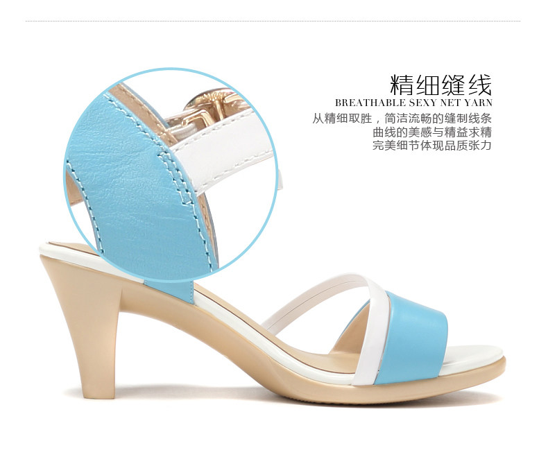 真皮女凉鞋夏季新款正品时尚粗跟牛皮高跟韩版女鞋