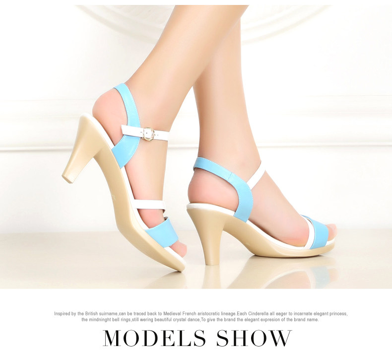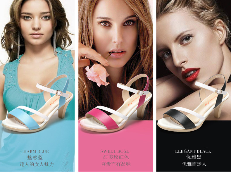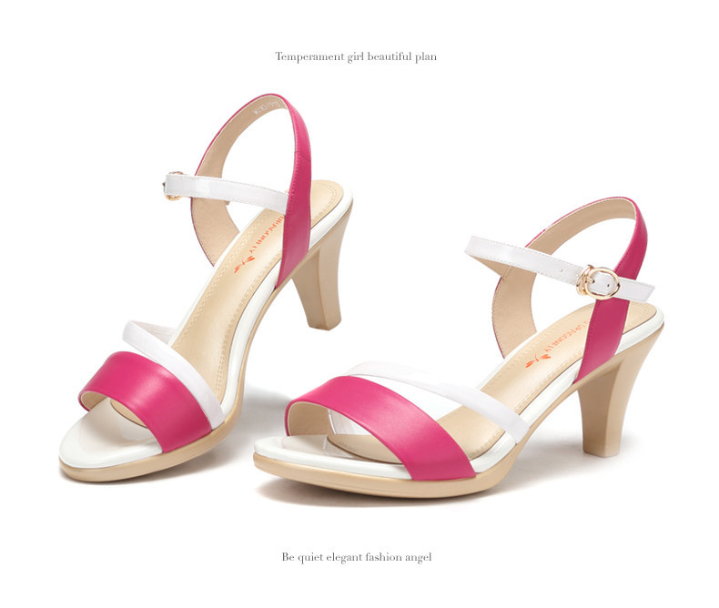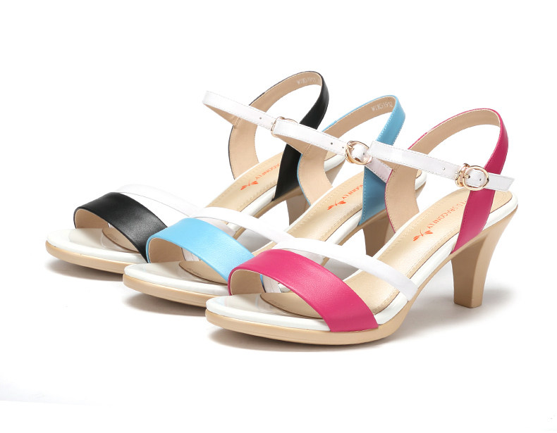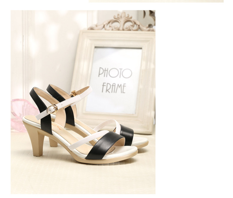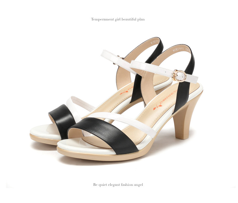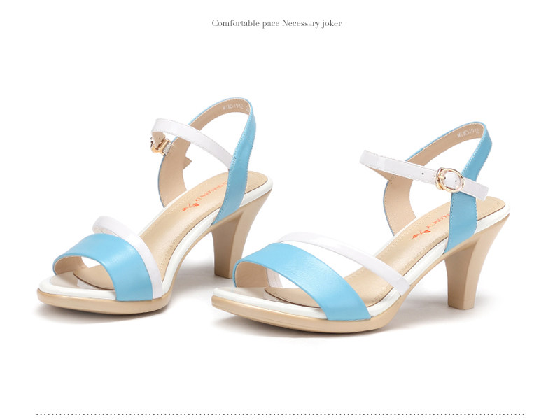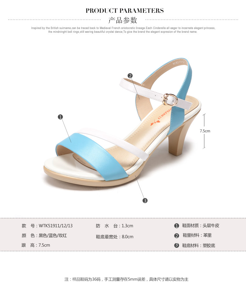 真皮女凉鞋夏季新款正品时尚粗跟牛皮高跟韩版女鞋