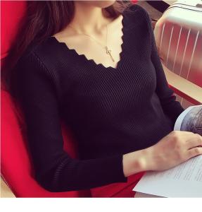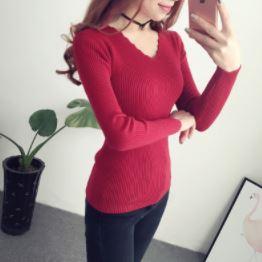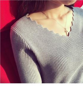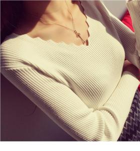 ネックラインのデザインカットが素敵な長袖ニット!