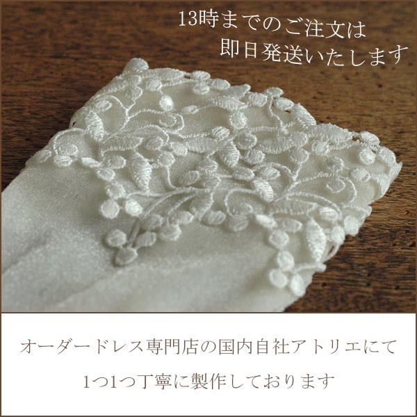 | グローブやレースの生地は繊細なものですので、場合によっては少しのひっかかりなどでも、糸ひけなどが発生する場合もございます。お取り扱いに気をつけてください。 |