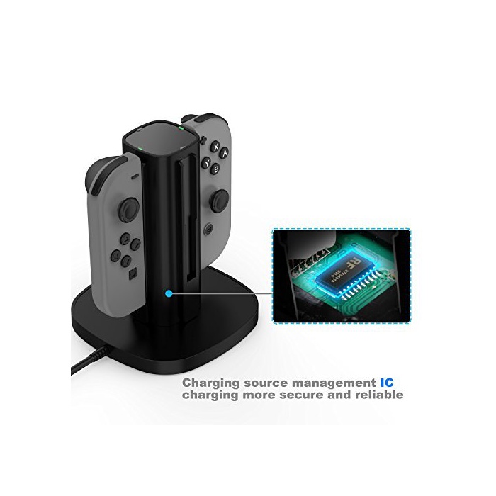 GameWill Nintendo Switch용 Joy-Con 충전 스탠드 joy-con 급속 충전 스탠드 4대 동시 충전 가능 USB케이블 내장 충전 지시 램프 부착 (블랙)