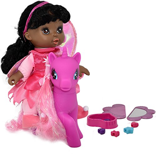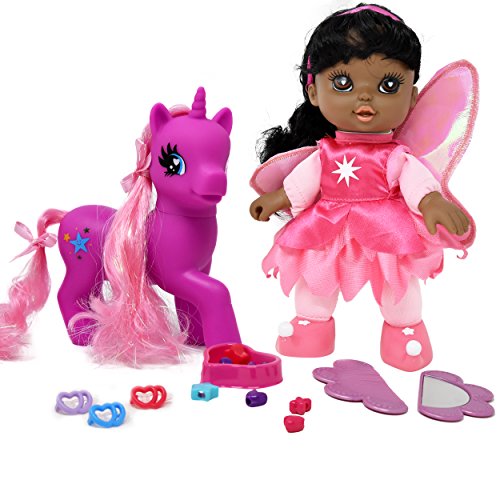 SUPER CUTE LOVABLE DOLL AND PONY SET: This fairy doll and pony offers an incredible way to keep your little one entertained for hours and gives her a best friend that she can hang out with. The doll and pony also come with a lot of accessories, 3 different color clips, a brush and mirror set, heart and star beads so your little one can create beautiful hairstyles.