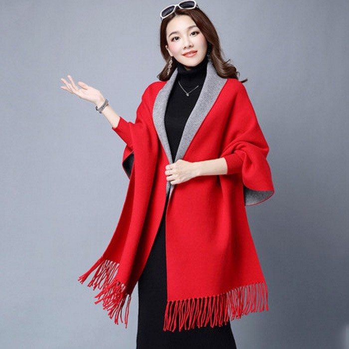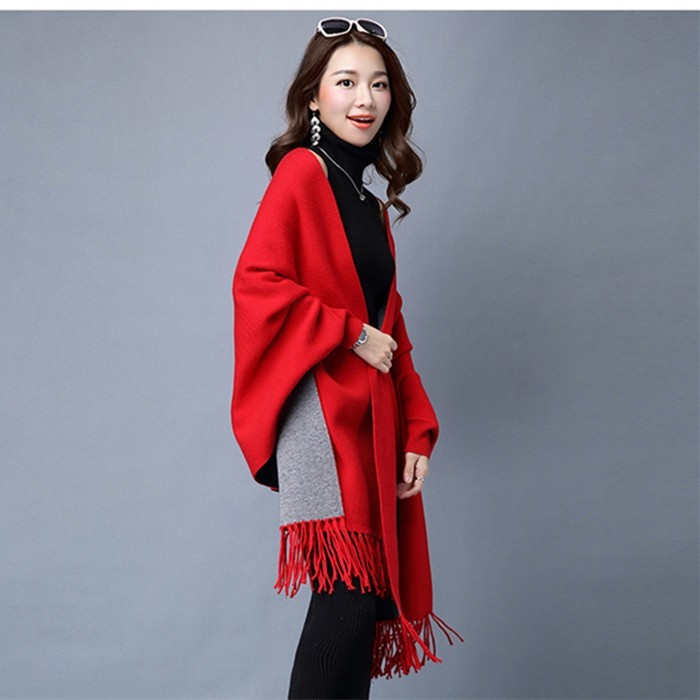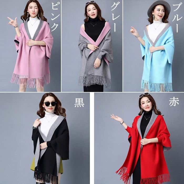 ★ご注意:こちらの商品はお客様がご入金後、メーカーから取り寄せさせて発送する予定です。ご入金からお届けまで約1-7日ほど時間がかかります。予めご理解いただきました上でご注文下さいますようお願いいたします。・ボレロ・ストール・マフラーの3wayに使える袖付ケープ♪・短めのフリンジがさりげなくアクセントになっており、年代・性別問わずお使い頂けるデザインになる♪・結婚式・披露宴・お呼ばれなどのイベントやフォーマルシーンだけでなく、カジュアルスタイルなどどんなシーンでも大活躍の1枚だ♪★素材:ボリエステル★生地の厚さ:普通★カラー:ピンク グレー ブルー 黒 赤(写真参考)※お客様ご使用のPC環境により商品画像のカラーが多少異なる場合があります。仕入時期により多少デザインなど異なる場合があります。ご了承ください。★サイズ(CM):フリーサイズ F:長さ約190cm×幅約60cm※サイズは人の手によって測っているため、1-3cmの誤差がある場合がございます。予めご了承下さいませ。