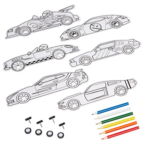 Shrinky Dinks Mini Racers Activity Set lets your young car enthusiast customize and race their own car. Color, bake and shrink 6 modern race car designs, then race them 2 at a time by attaching tires to your favorite cars! Includes 6 Shrinky Dinks Shapes, 8 plastic wheels, 6 colored pencils and instructions. Recommended for children 5 years of age and older.Feature