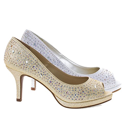 Binding : Apparel Product Description Enjoy your day or evening with these gorgeous metallic glitter peep toe pump with rhinestone studs array. The heel is a moderate 3 inches high heel and soft foam insole to make walking all day a breeze. (Please note that these measurements are based on a size 7). Style fits true to size. Available in Silver, Gold etc. All man made materials. By City Classified 0