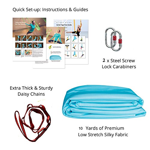 • Everything you need to setup and do flying yoga at home! Feel amazing opening and stretching the body on these divine silky fabrics!