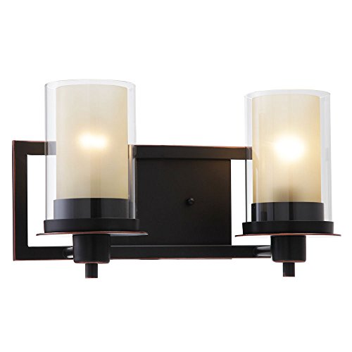 Designers Impressions Juno Oil Rubbed Bronze 2 Light Wall Sconce / Bathroom Fixture with Amber and Clear Glass: 73470