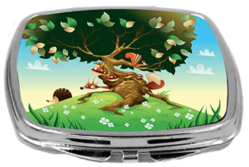 Rikki Knight Compact Mirror, Cartoon Landscape with Animals, 3 Ounce