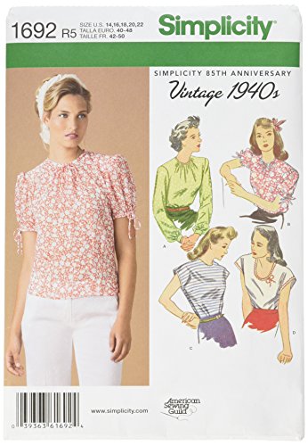 -. Title : Simplicity Vintage 1940's American Sewing Guild Pattern 1692 Misses Vintage Style Tops Sizes 14-16-18-20-22