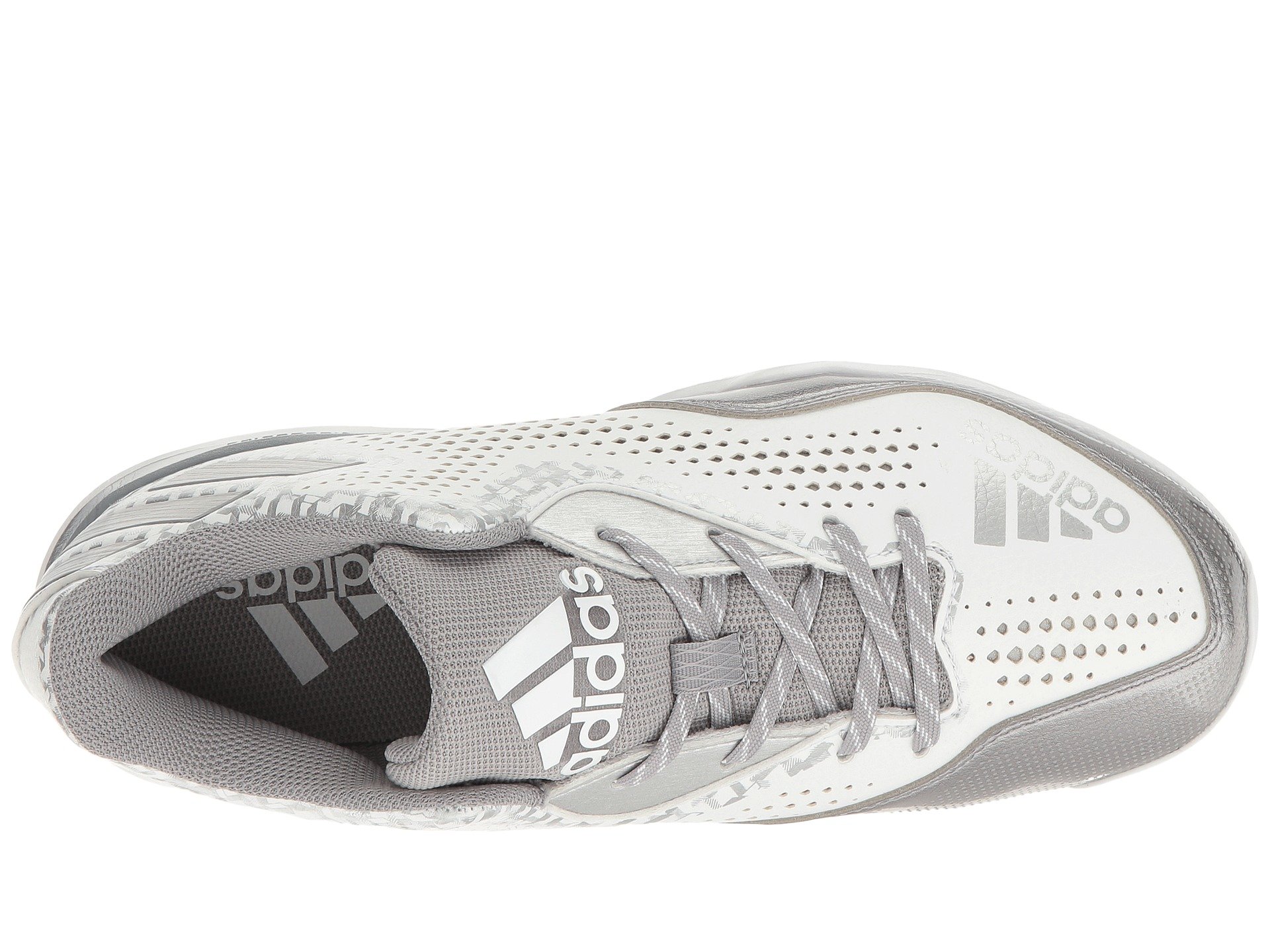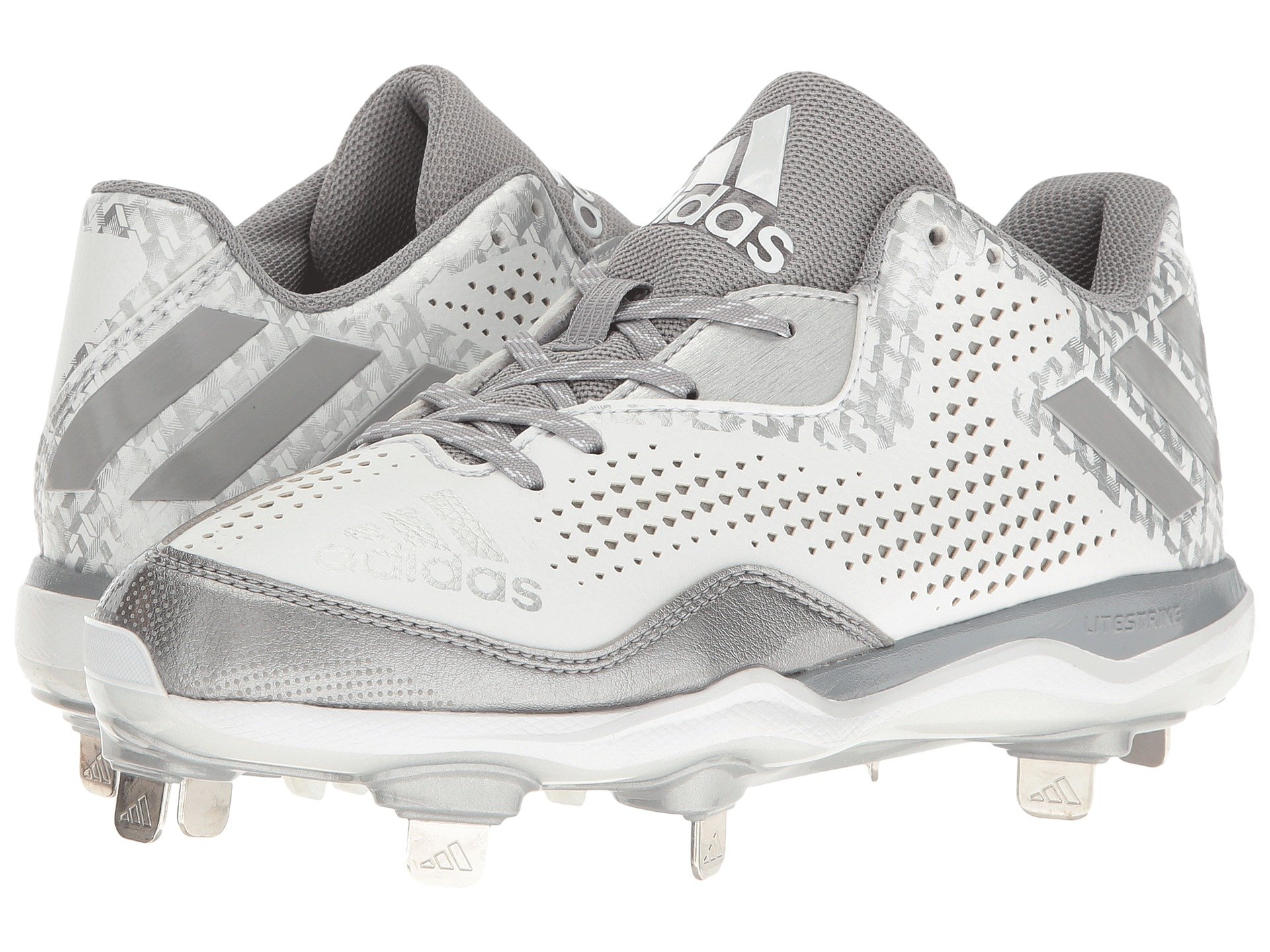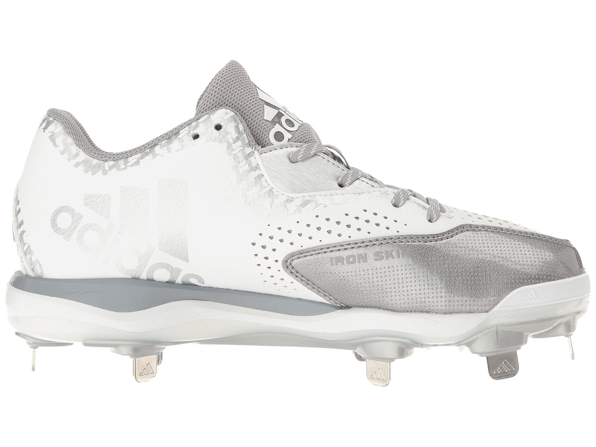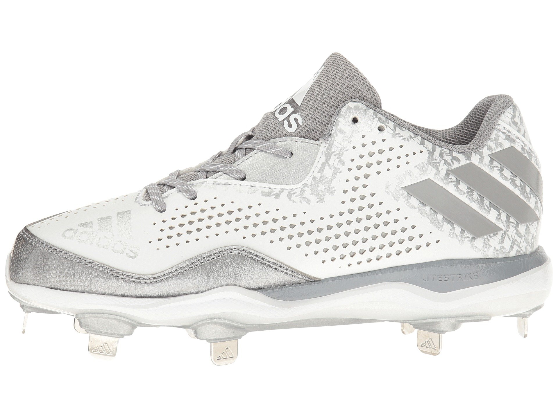 | Product Information SKU: #9004972Your team looks striking under the gleaming stadium lights in the adidas? PowerAlley 4 baseball cleat. Durable nubuck upper features breathable diamond perforations and gloss baseball stitch graphics. Lace-up closure. IRONSKIN seamless toe cap supplies abrasion resistance in this high-wear area.Heel pull loop.Padded tongue and collar. Comfortable textile lining for a great in-shoe feel.Molded textile footbed. LITESTRIKE EVA midsole offers lightweight cushioning and supports aggressive play.Internal shank provides mid-foot support and torsional rigidity.Eight fixed metal blades deliver aggressive traction. Imported. Product measurements were taken using size 9, width B - Medium. Please note that measurements may vary by size.Weight of footwear is based on a single item, not a pair.Measurements: Weight: 12 oz |