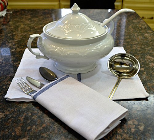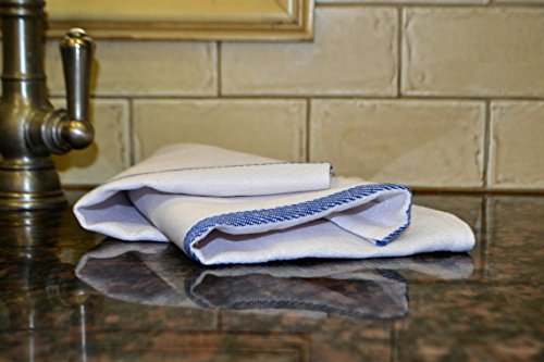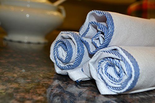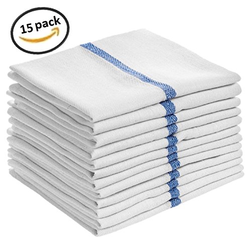 15 Pack Kitchen-Hotel-Restaurant Dish Towels Cloth Tea Towels with Herringbone Weave, and blue side striped. Used to dry dishes, stemware, spills and counters.