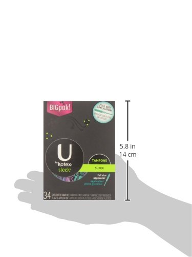 ReleaseDate : 2016-06-09 Studio : Kimberly-Clark Corp. Publisher : Kimberly-Clark Corp. Binding : Health and Beauty Product Description U by Kotex Sleek Super Tampons offer outstanding period protection in slim design. Sleek Super tampons have a full-size applicator with PerfectTouch Grip for easy insertion and just-right placement. U by Kotex Sleek Super tampons have 3 fearless colors to help you escape boring period protection. 0